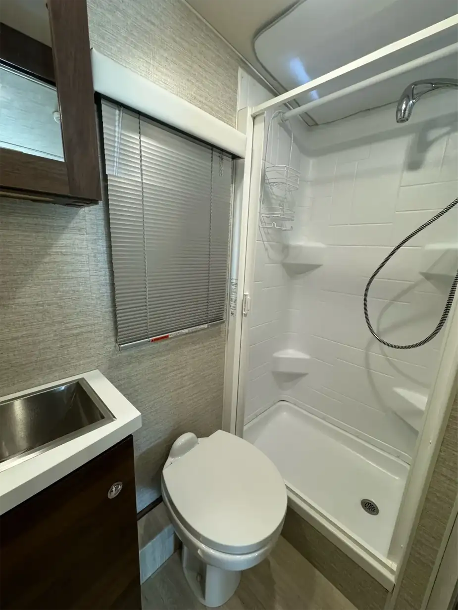 Marząc o wyjeździe wypoczynkowym, na pewno chcesz też zadbać o higienę zgodnie ze swoimi przyzwyczajeniami. Kamper 6-osobowy Winnebago View posiada osobną toaletę i prysznic, co ułatwia korzystanie z niego nawet przez większą grupę osób.